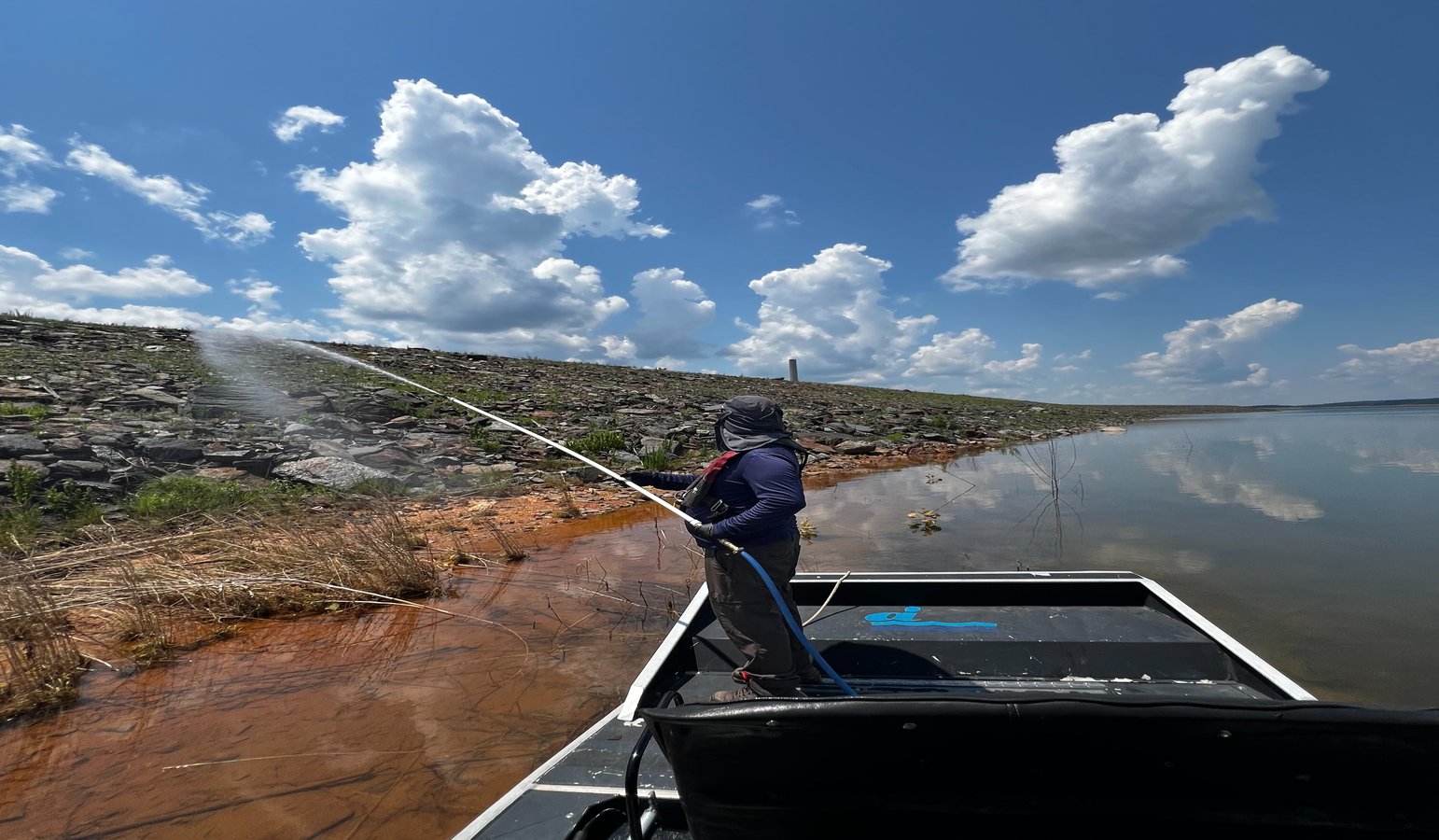 To address these challenges, our team uses specialized equipment designed to safely access riprap and spillway areas that are difficult to reach with standard equipment. We apply EPA-registered herbicides in a targeted, responsible manner to control unwanted vegetation while protecting surrounding habitats and the functionality of the shoreline.